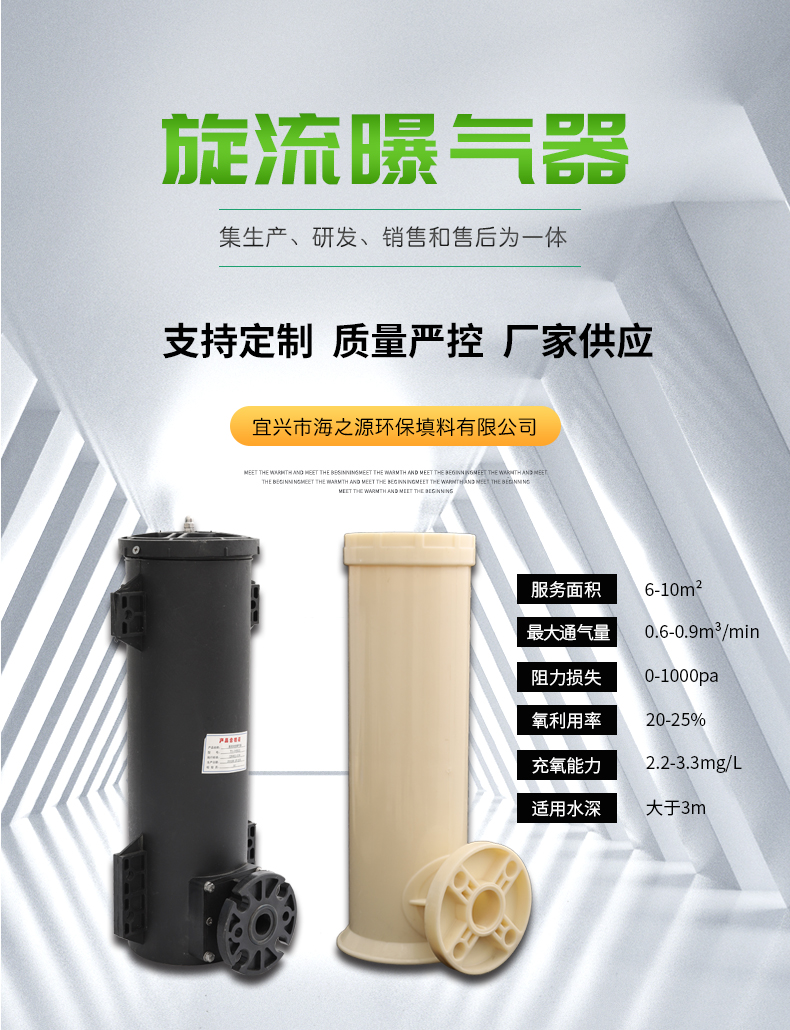 旋流曝氣器主要由外筒、進氣管、回流板、楔形結構四部分組成,可提升旋流曝氣器溶氧效率高,壓力損失小,攪拌能力強,不堵塞,池底不積泥,,免維護,間歇運行,使用壽命長;與傳統的螺旋曝氣器、發散式曝氣器、穿孔管曝氣器相比,可升降旋流曝氣器的能耗可降低25%以上。