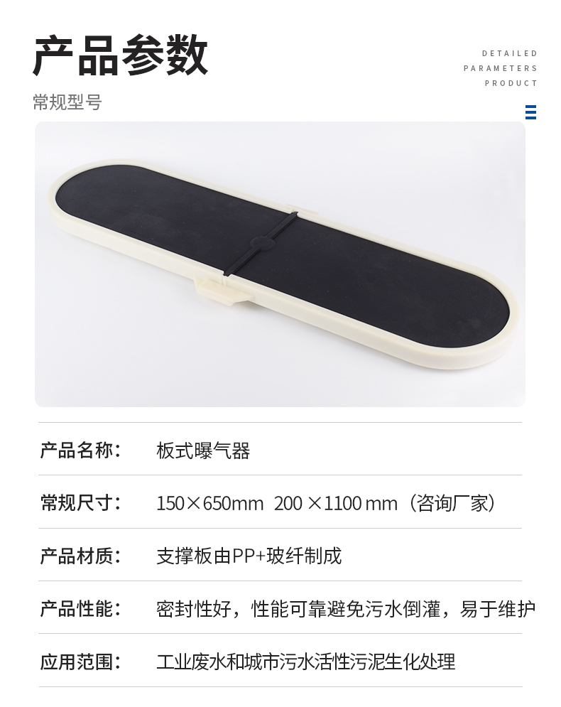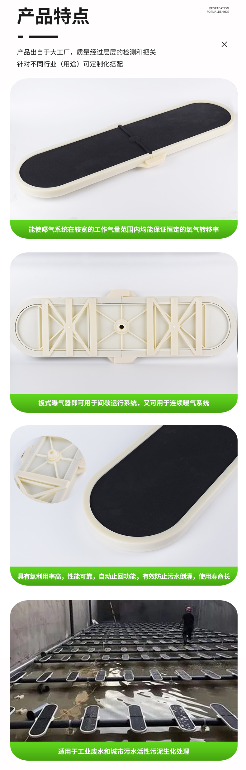 板式曝氣器設(shè)計(jì)結(jié)構(gòu)使曝氣器系統(tǒng)在較寬的工作氣量范圍內(nèi)保持低能耗、高效率;開孔方式,在鼓風(fēng)機(jī)工作的過(guò)程中,曝氣器產(chǎn)生的氣泡均勻,達(dá)到很好的蓮花效應(yīng);該曝氣即可用于間歇運(yùn)行系統(tǒng),又可用于連續(xù)曝氣系統(tǒng),具有氧利用率高,性能可靠,曝氣器具有自動(dòng)止回功能,有效防止污水倒灌,使用壽命長(zhǎng)等特點(diǎn)。